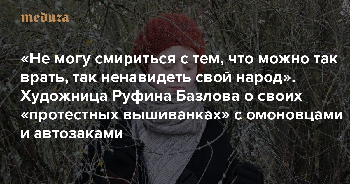 Иллюстрации 30-летней художницы Руфины Базловой многие публиковали у себя в соцсетях в самые ожесточенные дни белорусского протеста — на картинках автора из Беларуси основные события этих дней выглядят как орнамент с народной вышиванки. На этих изображениях, на первый взгляд, ироничных, есть автозаки, ОМОН, севшие на 10 суток за песню «Перемен!» диджеи и сам Александр Лукашенко, превращающийся в таракана. «Медуза» поговорила с художницей из Беларуси, живущей в Чехии, о том, каким ей видится протест — и почему национальный орнамент оказался лучшим языком, чтобы его описать.