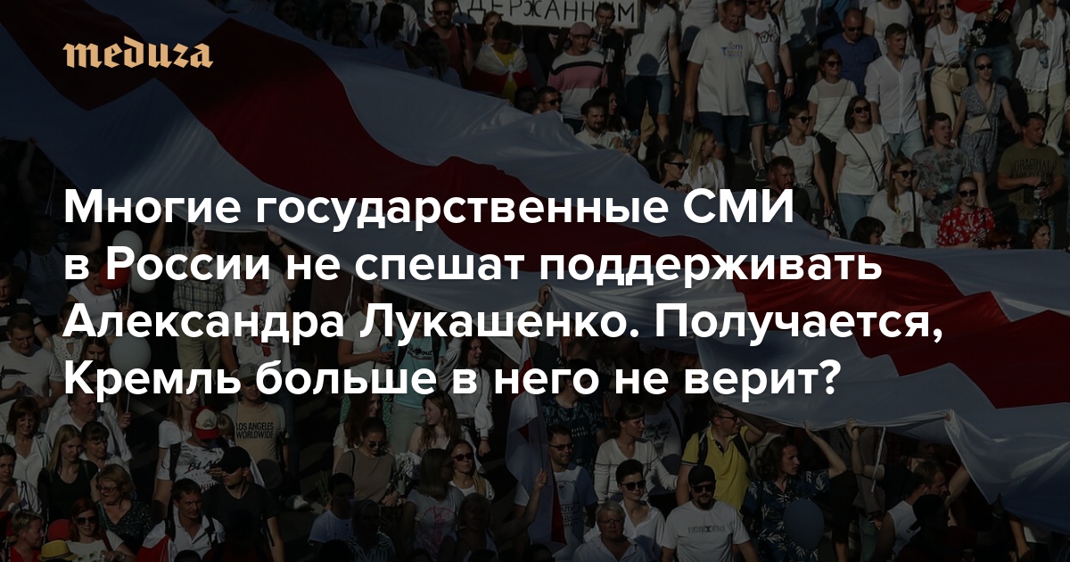 Многие государственные СМИ в России не спешат поддерживать Александра Лукашенко. Получается, Кремль больше в него не верит?