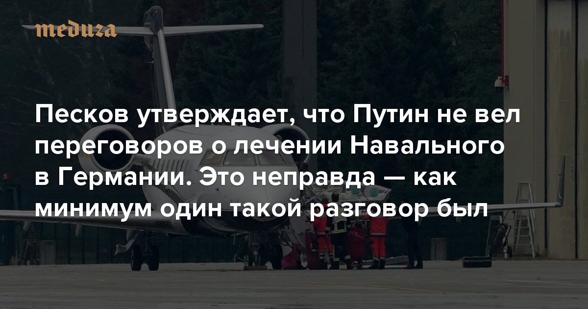 Песков утверждает, что Путин не вел переговоров о лечении Навального в Германии. Это неправда — как минимум один такой разговор был