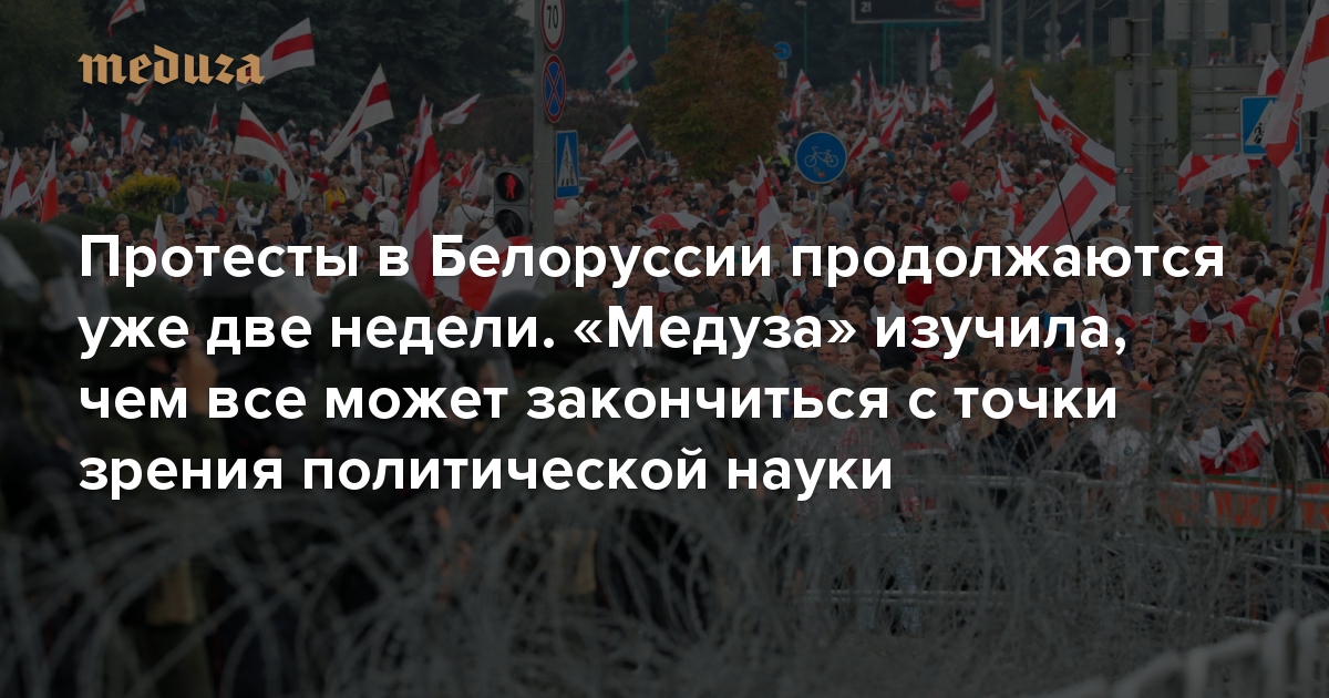 Протесты в Белоруссии продолжаются уже две недели. «Медуза» изучила, чем все может закончиться с точки зрения политической науки