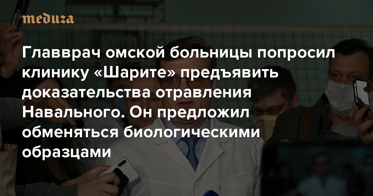 Главврач омской больницы попросил клинику «Шарите» предъявить доказательства отравления Навального. Он предложил обменяться биологическими образцами