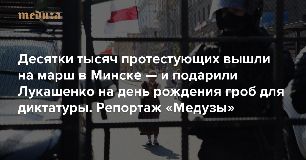 Да смирись ты уже Десятки тысяч протестующих вышли на марш в Минске — и подарили Лукашенко на день рождения гроб для диктатуры. Репортаж «Медузы»