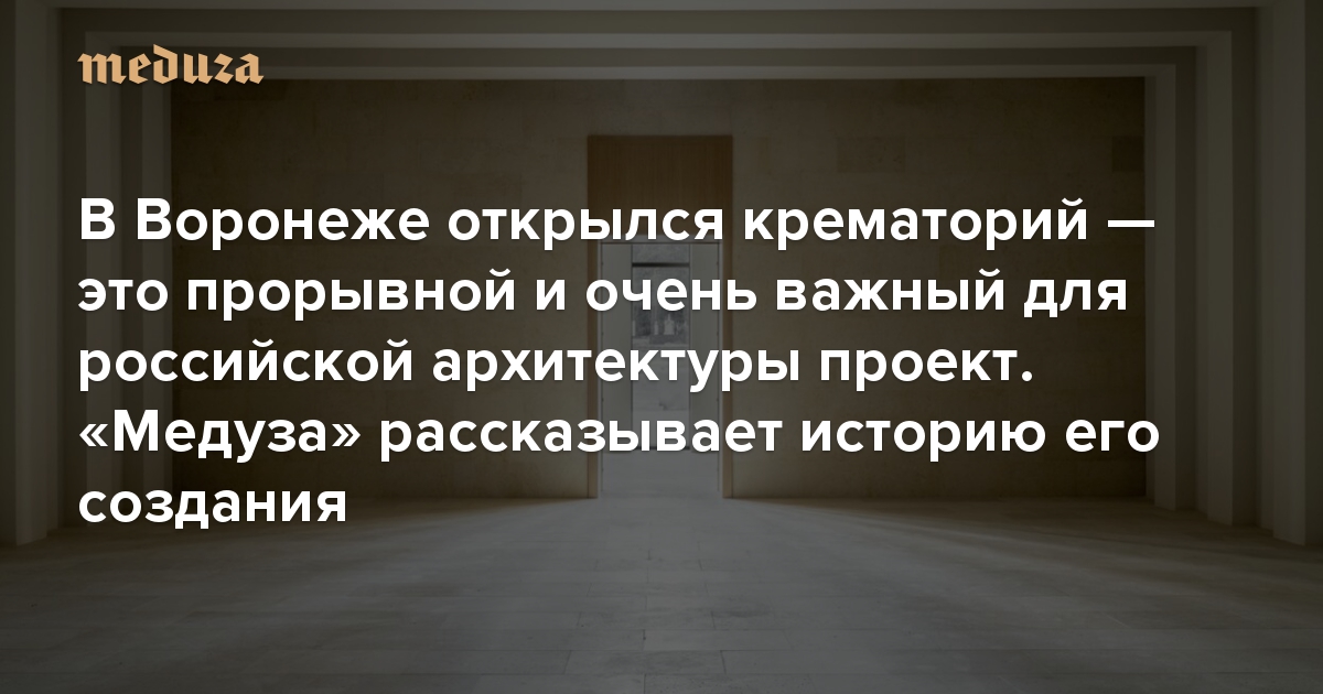 В Воронеже открылся крематорий — это прорывной и очень важный для российской архитектуры проект. «Медуза» рассказывает историю его создания