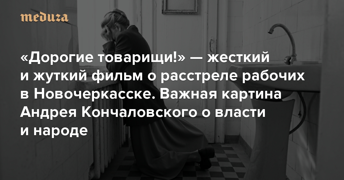 В Венеции показали одну из главных премьер кинофестиваля 2020 года — фильм «Дорогие товарищи!» Андрея Кончаловского, участвующий в конкурсе. В основе картины — события, которые были засекречены несколько десятилетий. В 1962 году в Новочеркасске рабочие, недовольные повышением цен и понижением зарплат, объявили забастовку и вышли на демонстрацию. Военные стреляли по толпе боевыми патронами, в результате чего погибли 26 человек, сто пострадали, семерых, названных зачинщиками, приговорили к расстрелу. Главная героиня фильма в исполнении Юлии Высоцкой — партработница, которая теряет во время этих событий свою дочь. Кинокритик «Медузы» Антон Долин рассказывает, каким получился этот фильм об отношениях народа и власти.