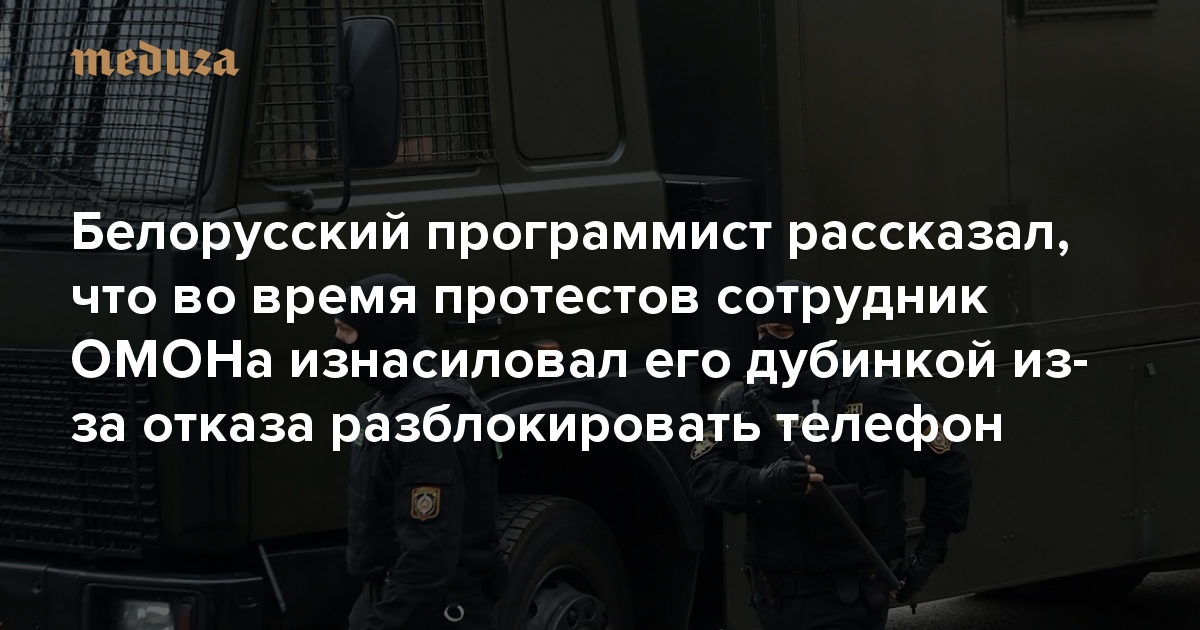 Белорусский программист рассказал, что сотрудник ОМОНа изнасиловал его дубинкой из-за отказа разблокировать телефон Это произошло на третий день протестов. В больницу пострадавший попал только через 30 часов