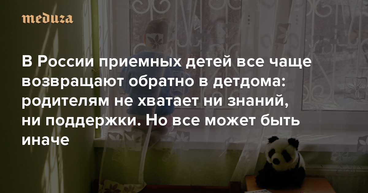 С 2014 по 2019 год число возвратов приемных детей в детдома выросло почти вдвое, подсчитал проект «Важные истории». При этом 63% таких возвратов в 2019 году случилось по инициативе самих приемных семей, а не органов опеки. Как правило, будущие приемные родители не знают, какой тяжелой может быть адаптация приемного ребенка в новой семье, а государство не всегда оказывает необходимую поддержку в первые годы после усыновления. По просьбе MeduzaCare Александра Сивцова разбирается, почему возвраты приемных детей происходят так часто и как можно улучшить эту ситуацию. Все имена героев изменены по соображениям безопасности.