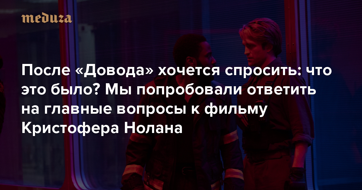 В начале сентября в России начали показывать «Довод» (в некоторых крупных городах прокат начался позже) — и все это время зрители шутят над инвертированным сюжетом сверхзапутанного фильма Кристофера Нолана и спорят, гений он — или в этот раз что-то пошло не так. И хотя действие в этом кино развивается более логичным образом, чем кажется с первого взгляда, изящества «Начала» Нолан явно не достиг — именно поэтому после фильма нужно посмотреть десятки видео и прочитать кучу фанатских обсуждений, чтобы понять, что хотел сказать автор. «Медуза» собрала основные вопросы к фильму в одном материале и попыталась ответить на них максимально подробно.