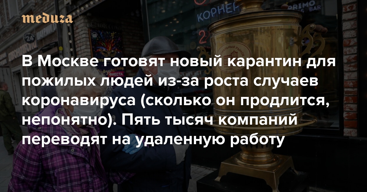 В Москве готовят новый карантин для пожилых людей из-за роста случаев коронавируса (сколько он продлится, непонятно) Пять тысяч компаний переводят на удаленную работу
