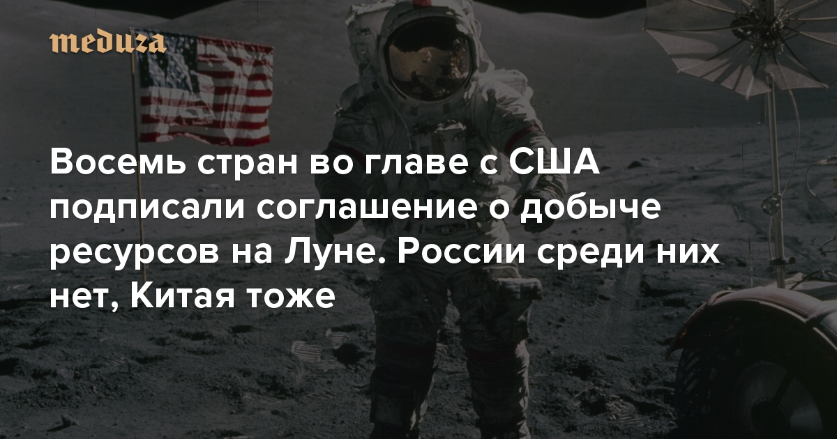 Восемь стран заключили международное соглашение об освоении Луны, регламентирующее в том числе добычу на ней полезных ископаемых. Церемония подписания прошла онлайн в рамках Международного конгресса астронавтов, сообщает NASA. В числе стран, подписавших документ, нет России и Китая.