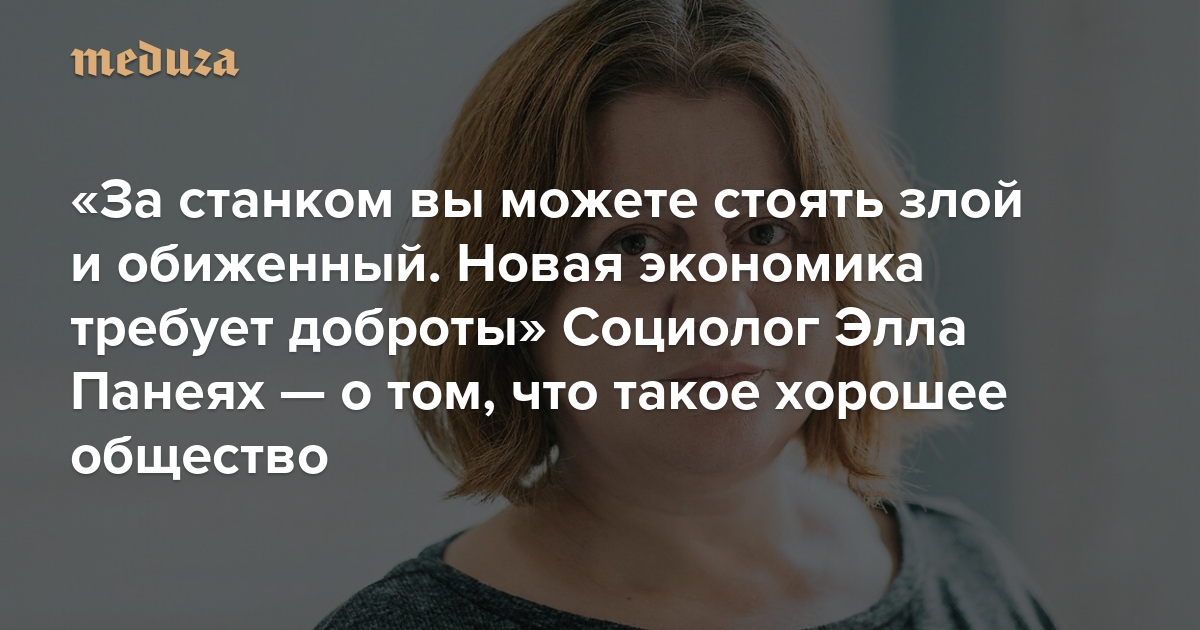 «За станком вы можете стоять злой и обиженный. Новая экономика требует доброты» Cоциолог Элла Панеях — о том, что такое хорошее общество и как его построить