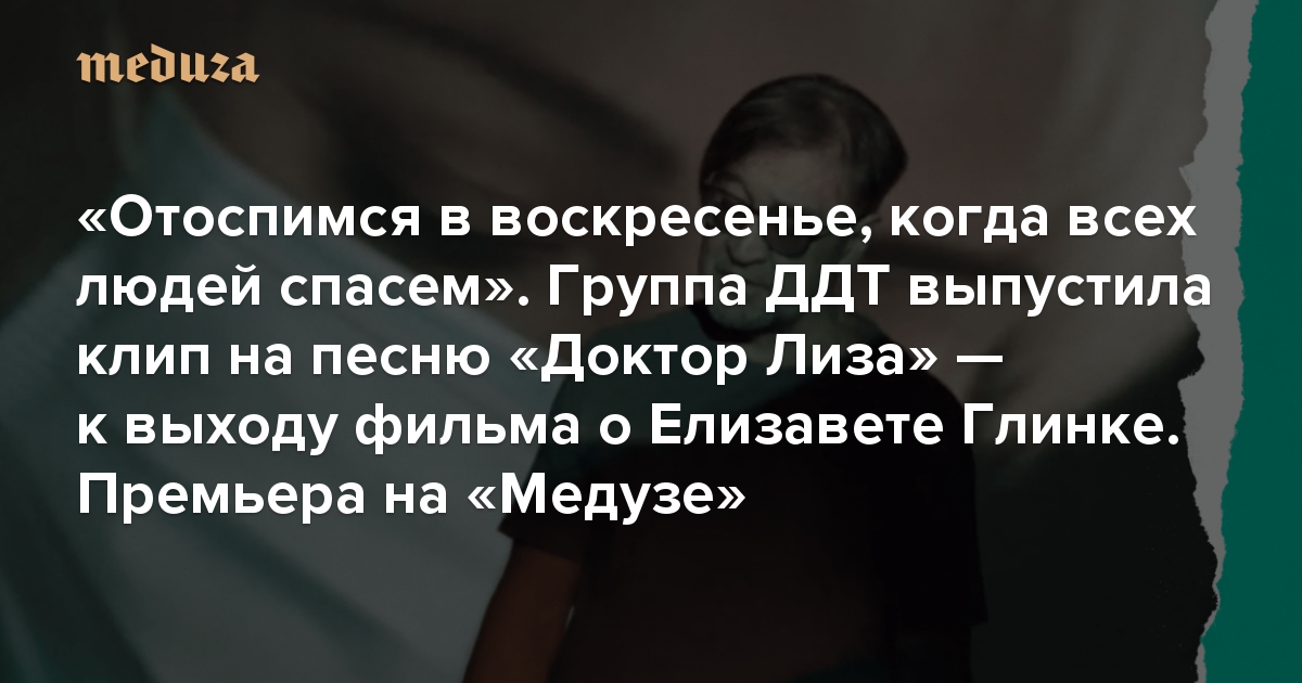 «Отоспимся в воскресенье, когда всех людей спасем» Группа ДДТ выпустила клип на песню «Доктор Лиза» — к выходу фильма о Елизавете Глинке. Премьера на «Медузе»