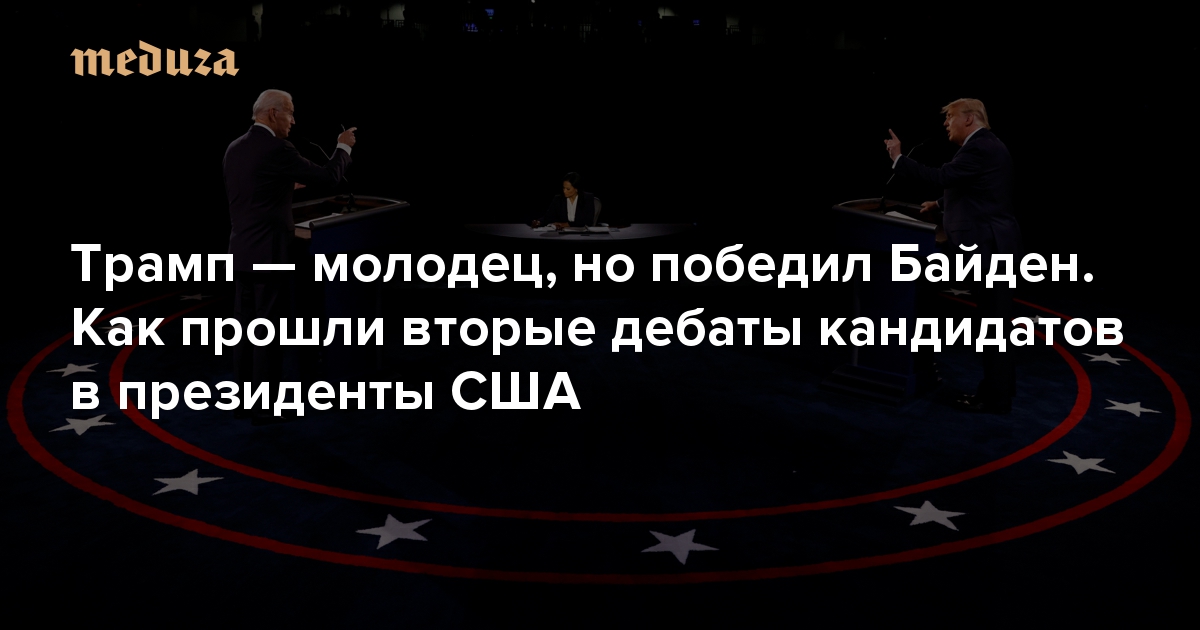 Трампу и Байдену стало труднее перебивать друг друга — ведь им могли отключить микрофон. Но обменяться обвинениями в связях с Россией им удалось Как прошли вторые (и последние) президентские дебаты в США
