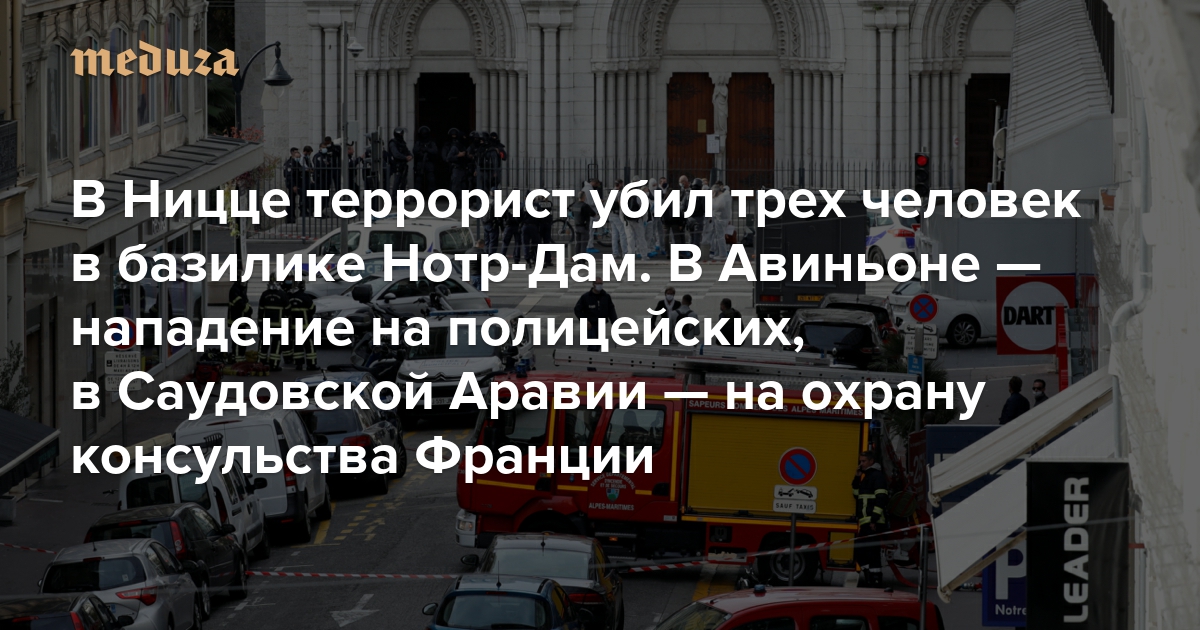 В Ницце террорист убил трех человек в базилике Нотр-Дам. В Авиньоне — нападение на полицейских, в Саудовской Аравии — на охрану консульства Франции