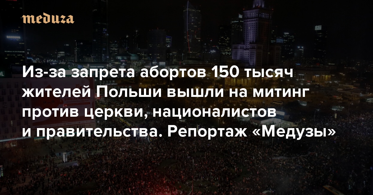 Широкая красная черта Из-за запрета абортов 150 тысяч жителей Польши вышли на митинг против церкви, националистов и правительства. Репортаж «Медузы»