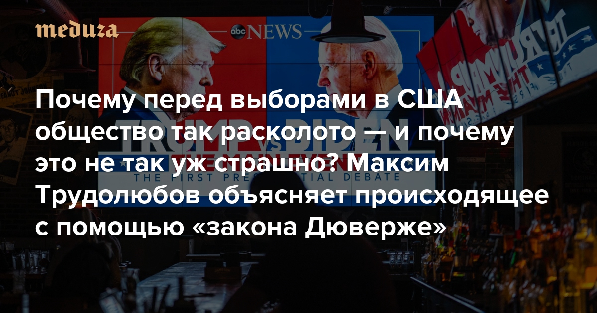 Почему перед выборами в США общество так расколото — и почему это не так уж страшно? Максим Трудолюбов объясняет происходящее с помощью «закона Дюверже»