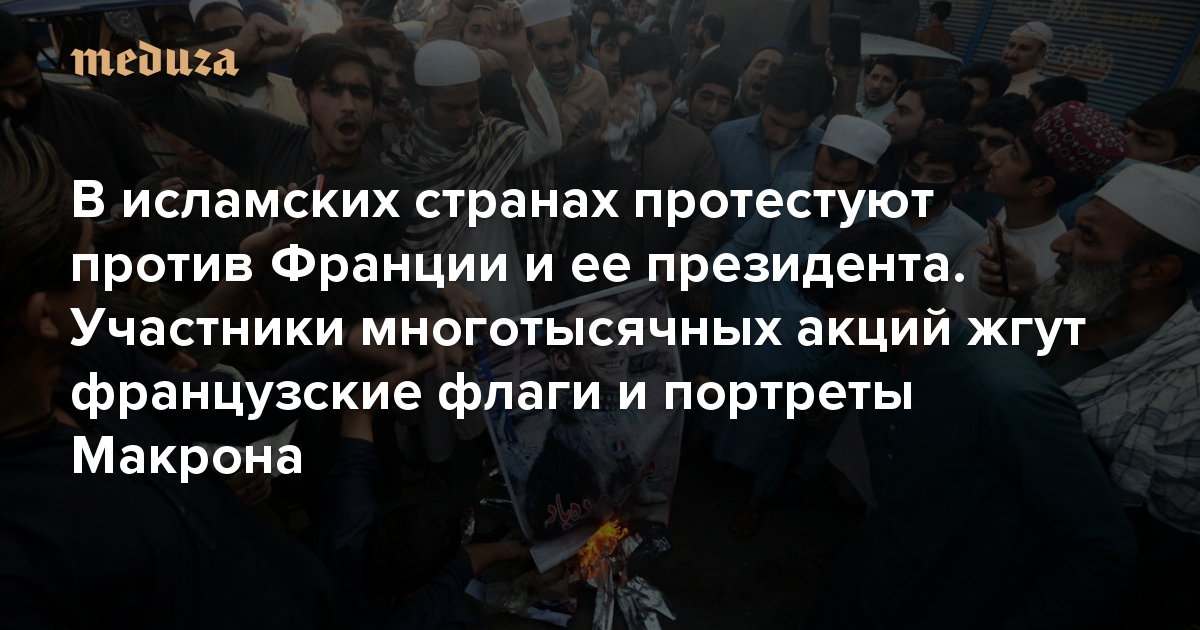 В исламских странах протестуют против Франции и ее президента. Участники многотысячных акций жгут французские флаги и портреты Макрона