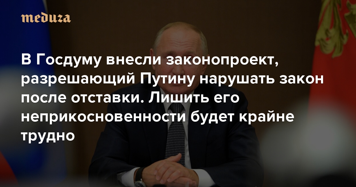 В Госдуму внесли законопроект, разрешающий Путину нарушать закон после отставки. Лишить его неприкосновенности будет крайне трудно