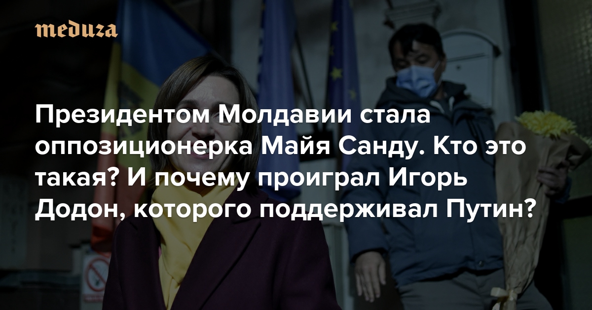 15 ноября в Молдавии прошли президентские выборы. На них победила кандидат от оппозиции Майя Санду — она станет первой женщиной на президентском посту в истории страны. Санду выиграла у действующего главы государства Игоря Додона, которого называли одним из главных сторонников Владимира Путина на постсоветском пространстве. Санду, наоборот, считается прозападным кандидатом. «Медуза» рассказывает главное об итогах выборов в Молдавии.