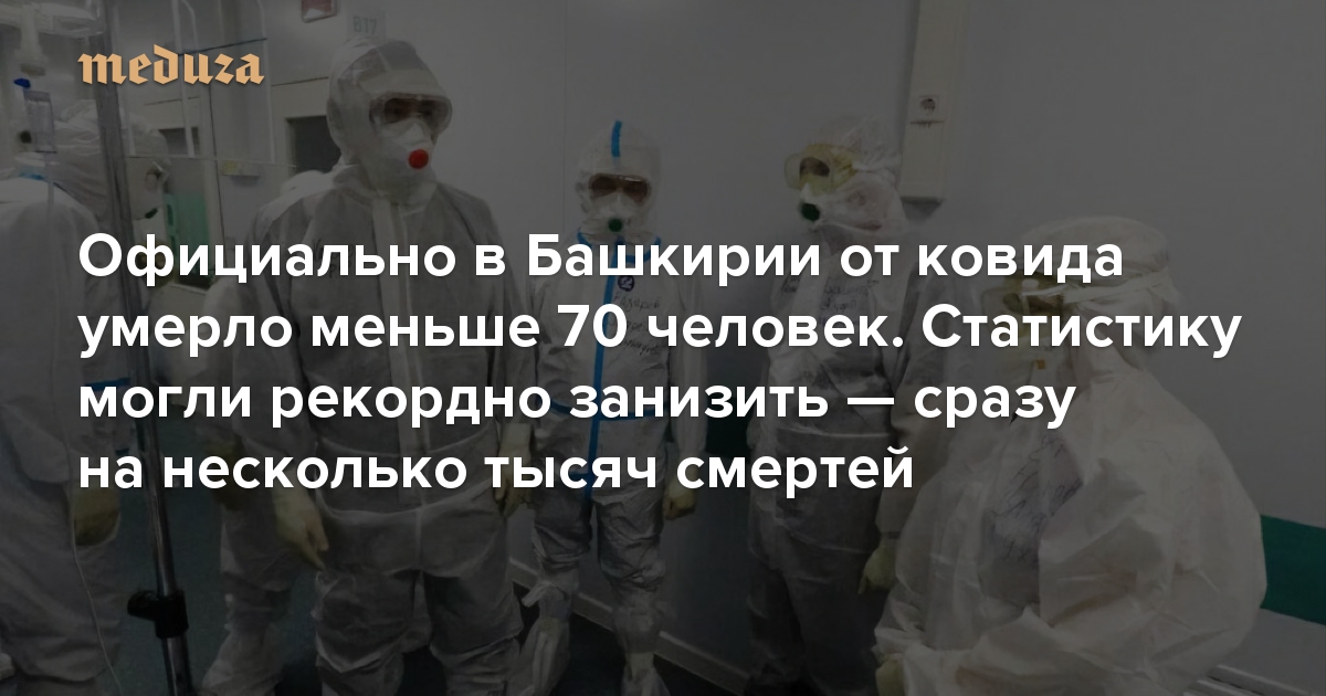 Реальную цифру умерших от ковида жителей Башкирии демограф оценивает в более чем 3700 человек — 80% от избыточной смертности в 4668 человек за время пандемии (еще 20% могут приходиться на другие причины). Официально причины такой избыточной смертности не называются — а запросы СМИ об этом власти Башкирии игнорируют. На запрос «Медузы» в региональном Минздраве также не ответили.