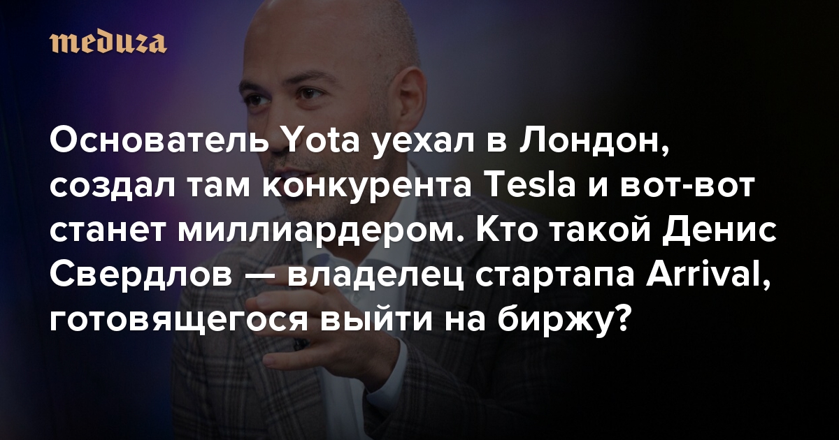 Основатель Yota уехал в Лондон, создал там конкурента Tesla и вот-вот станет миллиардером «Медуза» рассказывает, кто такой Денис Свердлов — владелец стартапа Arrival, готовящегося выйти на биржу