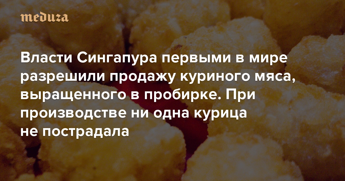 Власти Сингапура первыми в мире разрешили продажу куриного мяса, выращенного в пробирке. При производстве ни одна курица не пострадала
