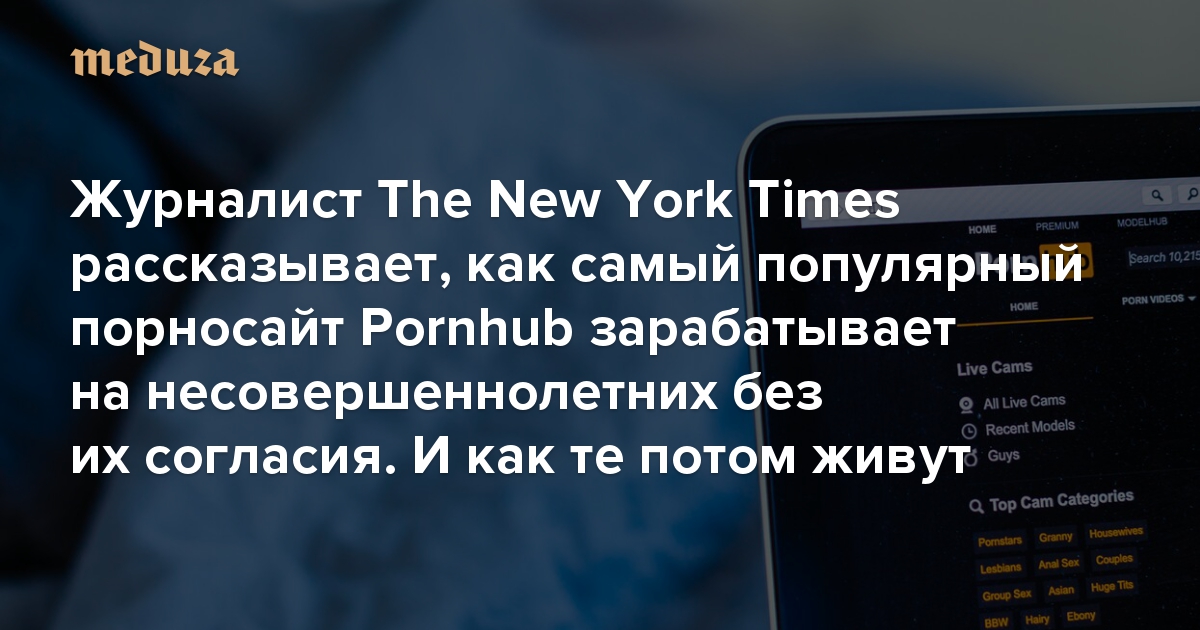 Дети Pornhub Журналист The New York Times рассказывает, как самый популярный порносайт зарабатывает на несовершеннолетних без их согласия. И как те потом живут