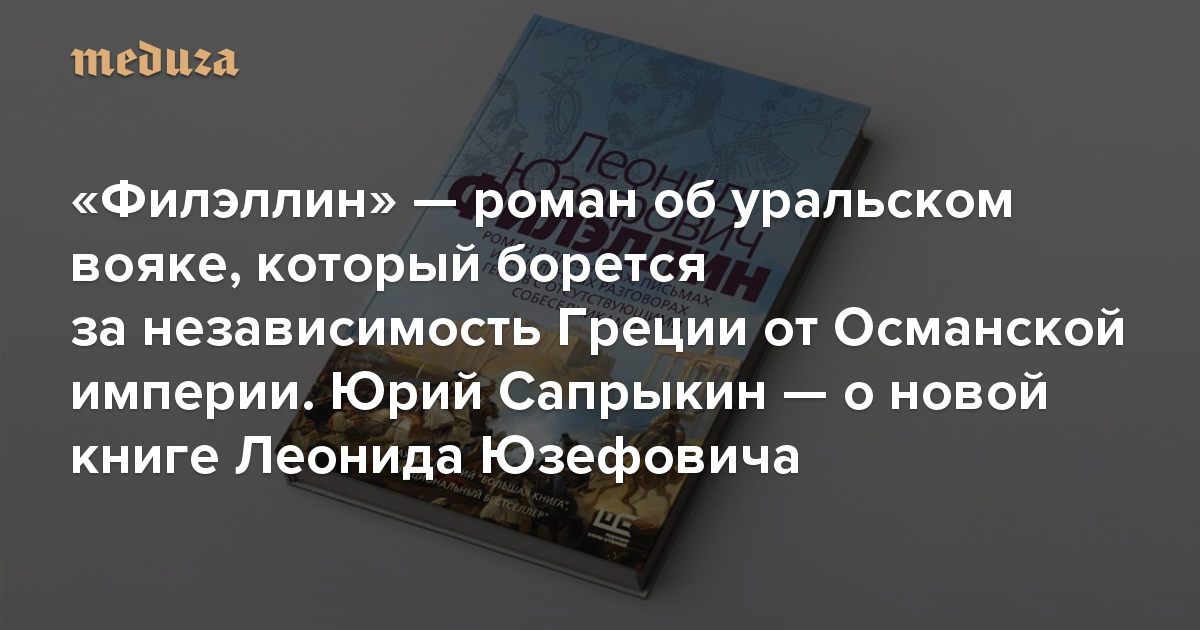 В «Редакции Елены Шубиной» вышел роман Леонида Юзефовича «Филэллин», события которого происходят в XIX веке. Автор «Зимней дороги» на этот раз описывает войну за независимость Греции от Османской империи. Главный герой романа, уральский штабс-капитан Григорий Мосцепанов решает поучаствовать в этой войне (в честь него и название, «филэллин» — это человек, сочувствующий грекам). По просьбе «Медузы», журналист Юрий Сапрыкин прочитал этот роман о войне — и рассказал, каким он получился.