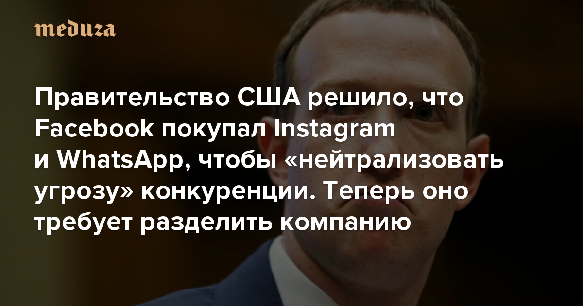 Правительство США решило, что Facebook покупал Instagram и WhatsApp, чтобы «нейтрализовать угрозу» конкуренции Теперь оно требует разделить компанию. Facebook не согласен: власти сами же и одобрили эти сделки