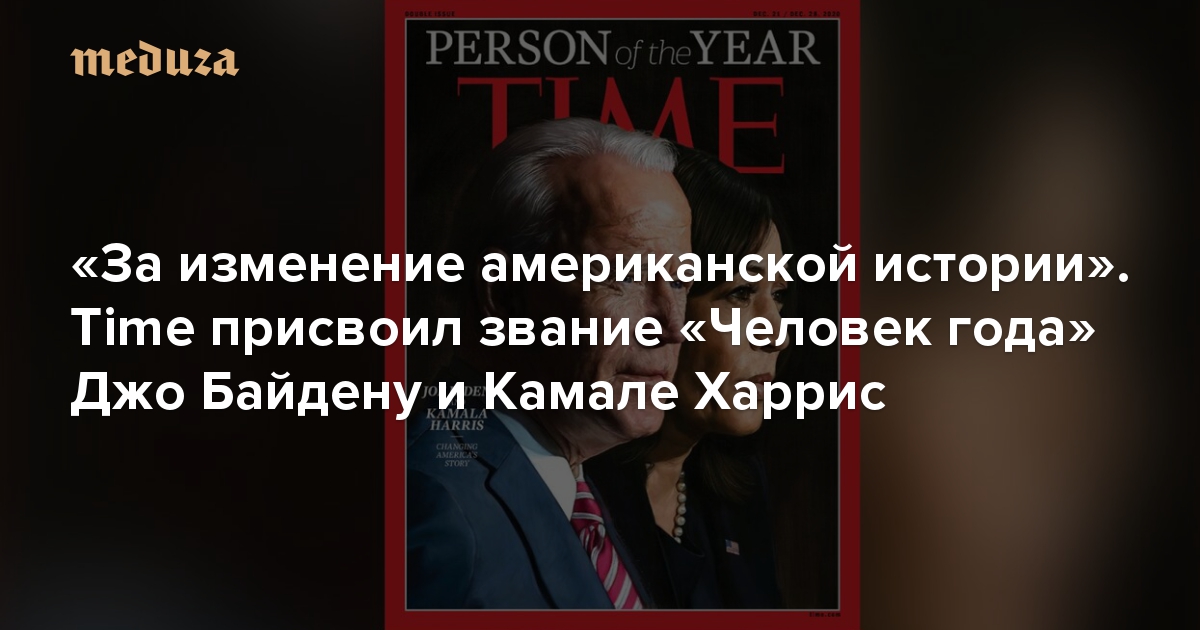 «За изменение американской истории, за демонстрацию того, что сила сопереживания превосходит ярость разделения, за то, что они разделяют видение исцеления в скорбящем мире, Джо Байден и Камала Харрис были названы Time «Человеком года», — сообщил журнал.