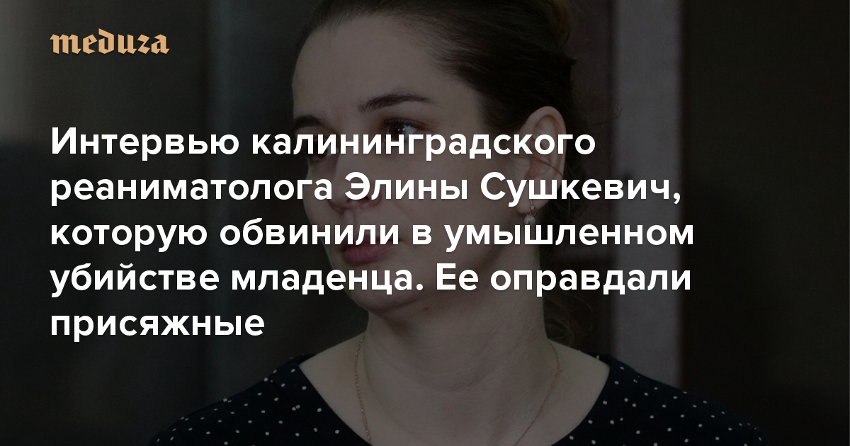 В Калининграде присяжные оправдали реаниматолога перинатального центра Элину Сушкевич и бывшего главврача местного роддома Елену Белую. Медиков обвиняли в умышленном убийстве младенца, родившегося недоношенным. По версии следствия, мальчика решили убить, чтобы не портить статистику роддома. Врачи свою вину не признали, в их защиту высказывалась большая часть профессионального сообщества. А глава национальной медицинской палаты Леонид Рошаль даже сравнил процесс с советским «делом врачей». По просьбе «Медузы» об уголовном преследовании и его последствиях с Элиной Сушкевич поговорила журналистка Екатерина Медведева из издания «Новый Калининград».