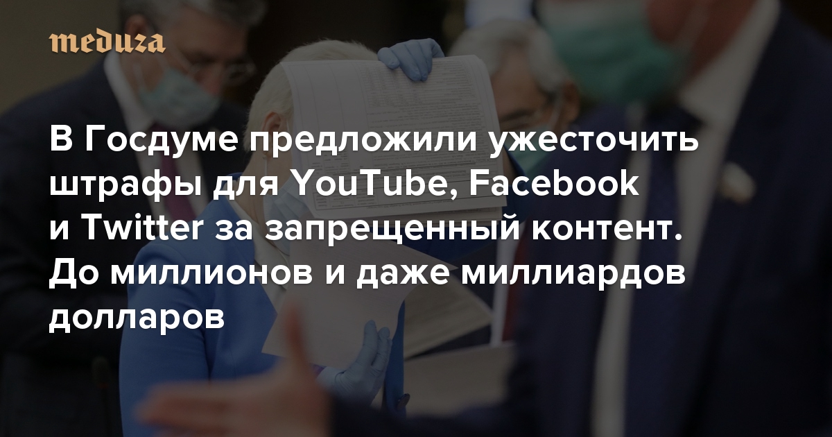 В Госдуме предложили ужесточить штрафы для YouTube, Facebook и Twitter за запрещенный контент. До миллионов и даже миллиардов долларов