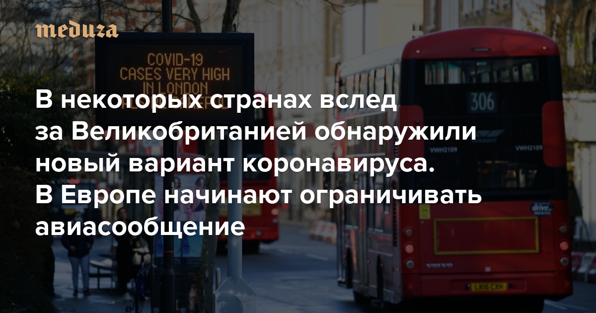 Обновление. К утру 21 декабря полеты из Великобритании на различный срок приостановили более 20 стран: это Австрия, Аргентина, Бельгия, Болгария, Германия, Израиль, Иран, Ирландия, Канада, Колумбия, Кувейт, Латвия, Литва, Марокко, Нидерланды, Румыния, Турция, Хорватия, Финляндия, Франция, Чили, Чехия, Швейцария, Эстония. В то же время Саудовская Аравия приостановила все международные рейсы на одну неделю.