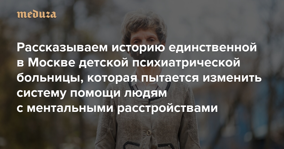 Раньше эта детская психиатрическая больница была известна как «Шестерка», теперь она называется Научно-практический центр психического здоровья детей и подростков имени Г. Е. Сухаревой — или просто центр Сухаревой. Его пациенты — дети от года до 18 лет с любыми психическими расстройствами. Кроме того, именно здесь разрабатывают методологию для всех детских психиатров, работающих в структуре государственного здравоохранения. В последние годы, с приходом нового директора Марины Бебчук, центр Сухаревой сильно изменился. Теперь в больнице не только лечат, но и борются со стигматизацией психических расстройств и психиатров. С началом пандемии делать это стало сложнее. Спецкор «Медузы» Кристина Сафонова рассказывает, как работает единственная детская психиатрическая больница Москвы — и как она стремится изменить систему оказания психиатрической помощи.