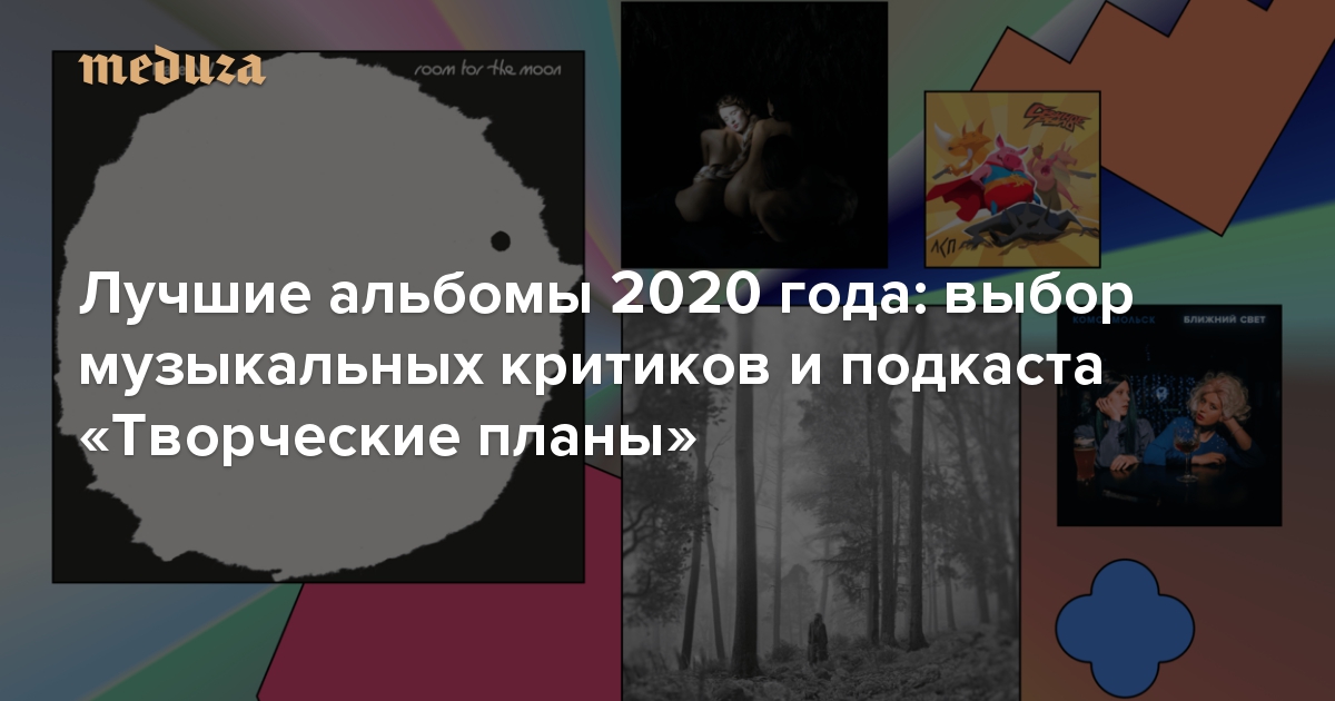 Подкаст «Медузы» о современной музыке «Творческие планы» завершил свой первый сезон. В финальном выпуске ведущий Александр Филимонов подвел итоги 2020 года вместе с редакторами The Flow, «Вечернего Урганта» и еще несколькими экспертами. По просьбе «Медузы» и «Творческих планов» все они, а также другие люди, чье мнение важно для индустрии, составили персональные списки любимых альбомов года — и выбрали по одному показательному треку из них.