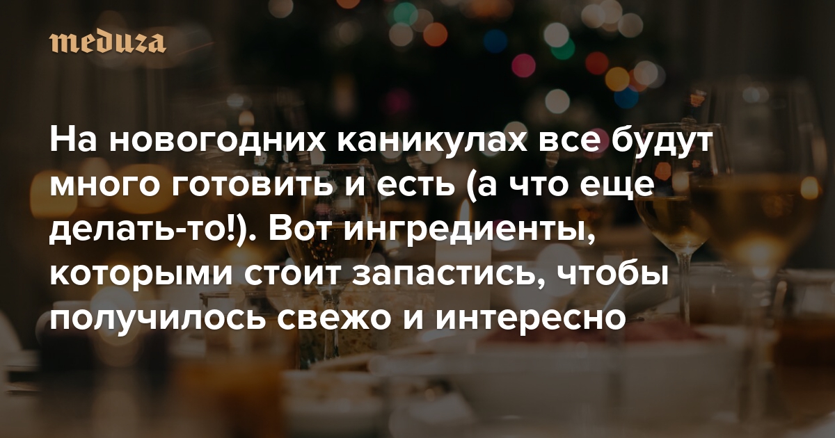 На новогодних каникулах все будут много готовить и есть (а что еще делать-то!). Вот ингредиенты, которыми стоит запастись, чтобы получилось свежо и интересно Кулинарный гид «Медузы»