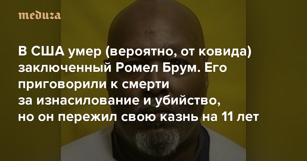 В США умер (вероятно, от ковида) заключенный Ромел Брум. Его приговорили к смерти за изнасилование и убийство, но он пережил собственную казнь на 11 лет