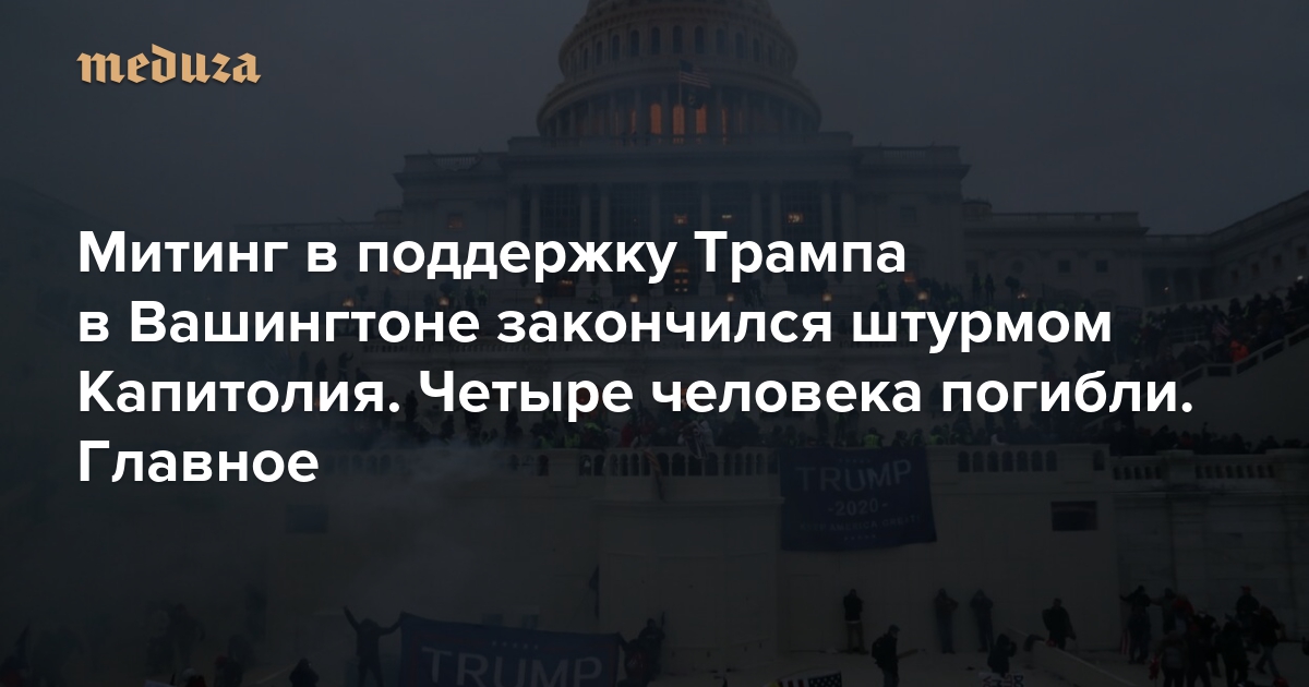 Митинг в поддержку Трампа в Вашингтоне закончился штурмом Капитолия. Четыре человека погибли. Главное