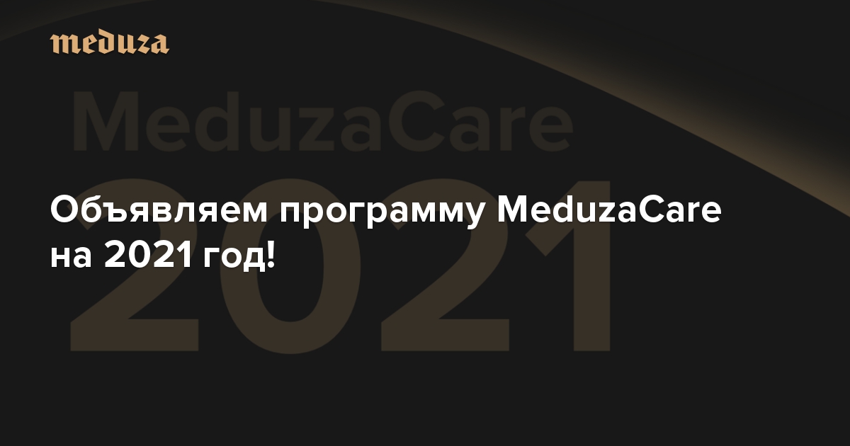 «Медуза» объявляет программу поддержки благотворителей на 2021 год Рассказываем, о каких темах MeduzaCare будет писать в ближайшие месяцы