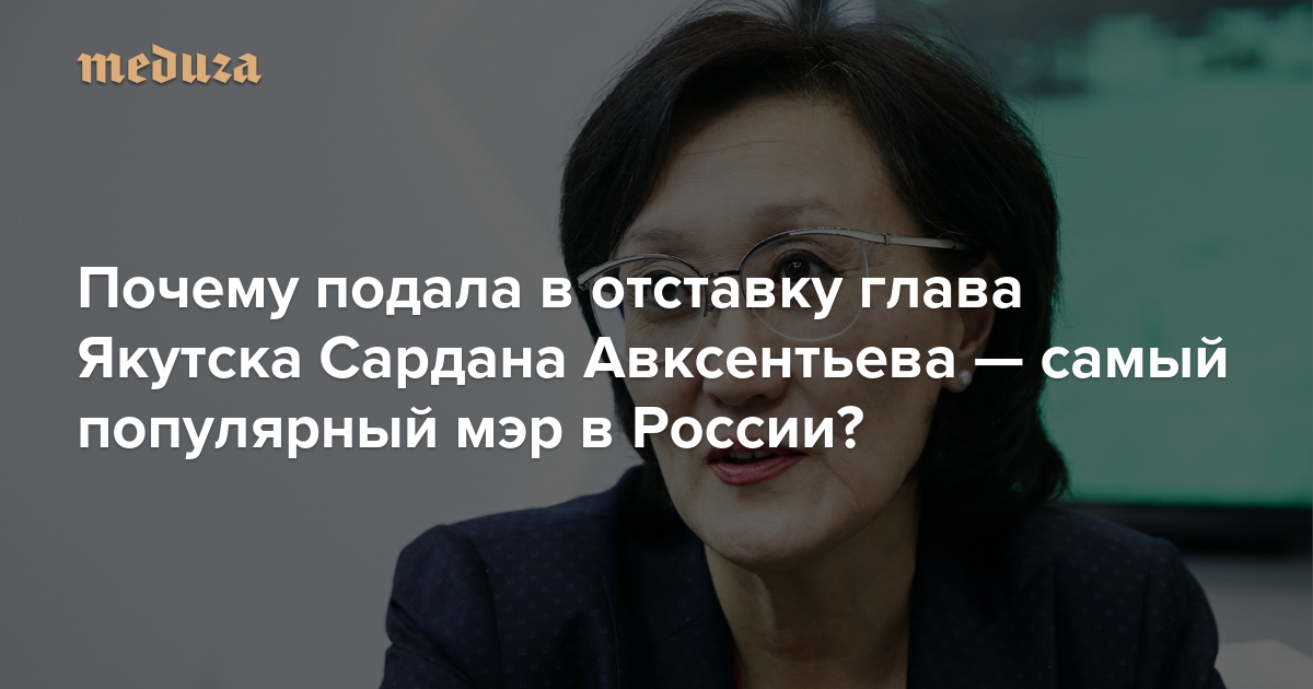 Мэр Якутска Сардана Авксентьева подала в отставку, проработав на своем посту чуть меньше двух с половиной лет. До 11 января она была (и формально остается до сих пор) единственной главой региональной столицы, которая выиграла выборы у кандидата-единоросса и смогла сохранить свой пост. Авксентьеву называли «народным мэром», она была популярна и за пределами родного города. Сразу после вступления в должность Авксентьева продала дорогие внедорожники мэрии, потом снизила цены на проезд в транспорте, а в 2020 году заявила о планах переселить чиновников в опенспейсы на окраине города. Кроме того, Сардана голосовала против поправок к Конституции и поддерживала объявившего себя шаманом Александра Габышева. Однако своим преемником народный мэр объявила Евгения Григорьева — единоросса и победителя кремлевского конкурса «Лидеры России». По сведениям «Медузы», отставки мэра Якутска давно добивался Кремль.