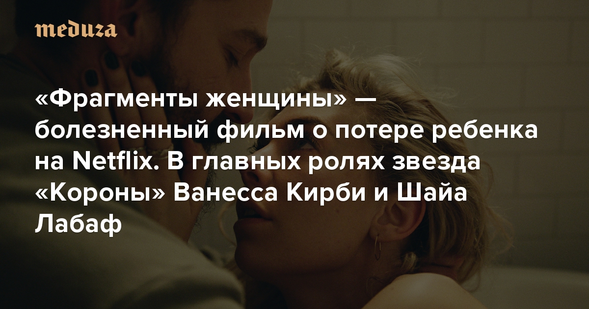 В январе на Netflix вышла драма венгерского режиссера Корнела Мундруцо «Фрагменты женщины». Главную роль в картине сыграла Ванесса Кирби, знакомая зрителям прежде всего по роли принцессы Маргарет в сериале «Корона». Мужа ее героини играет Шайа Лабаф. В самом начале фильма пара теряет ребенка, после чего пытается справиться с горем. В 2020 году картина участвовала в конкурсе Венецианского кинофестиваля, Кирби получила Кубок Вольпи за лучшую женскую роль. Кинокритик «Медузы» Антон Долин рассказывает, почему начало — самый сильный эпизод картины, и задается вопросом, может ли вообще кино честно рассказать о таком горе, как потеря ребенка.