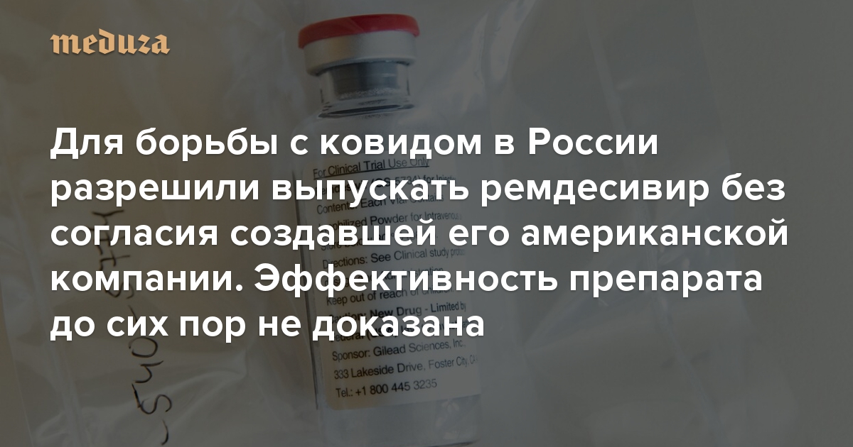 Для борьбы с ковидом в России разрешили выпускать ремдесивир без согласия создавшей его американской компании На него возлагали самые большие надежды, но эффективность до сих пор не доказана