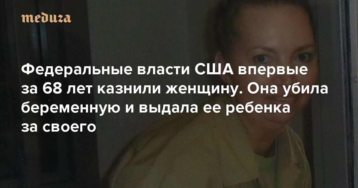 Федеральные власти США впервые за 68 лет казнили женщину. Она убила беременную и выдала ее ребенка за своего Преступницей ее сделало жестокое насилие с раннего детства, говорят адвокаты