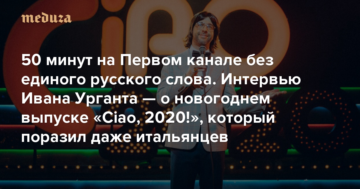 Главным событием российского новогоднего телеэфира стал специальный эпизод «Вечернего Урганта» — «Ciao, 2020!», вышедший 30 декабря. Неожиданно для зрителей авторы шоу сделали 50-минутный концерт на итальянском языке в стиле 1980-х. Свои песни, переведенные на итальянский, исполнили Клава Кока, Niletto, Иван Дорн, Cream Soda. Также в концерте приняли участие Little Big, Монеточка и Витя Исаев; в гости к ведущим пришли актрисы из сериала «Чики» — Варвара Шмыкова, Ирина Носова, Алена Михайлова, а также Александр Паль, Гарик Харламов, Ольга Бузова. На каникулах этот выпуск обсуждали не только в России, но и в Италии — он даже вошел в тренды итальянского ютьюба. «Медуза» обсудила с Иваном Ургантом, как создавался этот эпизод, а также спросила его об уходе Антона Долина из шоу, скандалах вокруг Александра Гудкова и о том, не устал ли он делать передачу, которой в 2021 году исполнится девять лет.