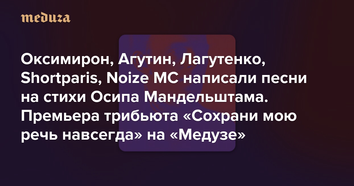 Оксимирон, Агутин, Лагутенко, Shortparis, Noize MC написали песни на стихи Осипа Мандельштама. Премьера трибьюта «Сохрани мою речь навсегда» на «Медузе»