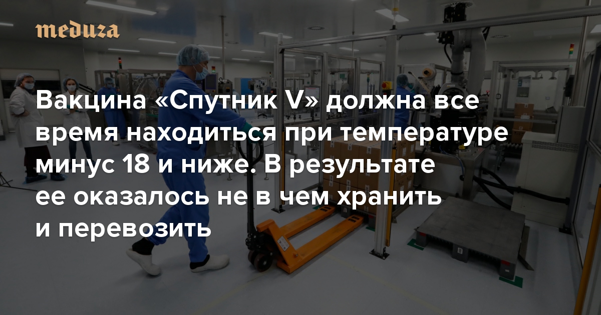 Для транспортировки и хранения российской вакцины от коронавируса «Спутник V» пришлось с нуля создавать инфраструктуру: из-за спешки вакцину не успели проверить на стабильность при температуре выше минус 18 градусов. В результате хранить и развозить препарат по регионам страны оказалось просто не в чем. Издание «Фонтанка» рассказало о том, как российские власти и клиники с помощью Сбербанка пытаются решить эту проблему. «Медуза» пересказывает этот материал.