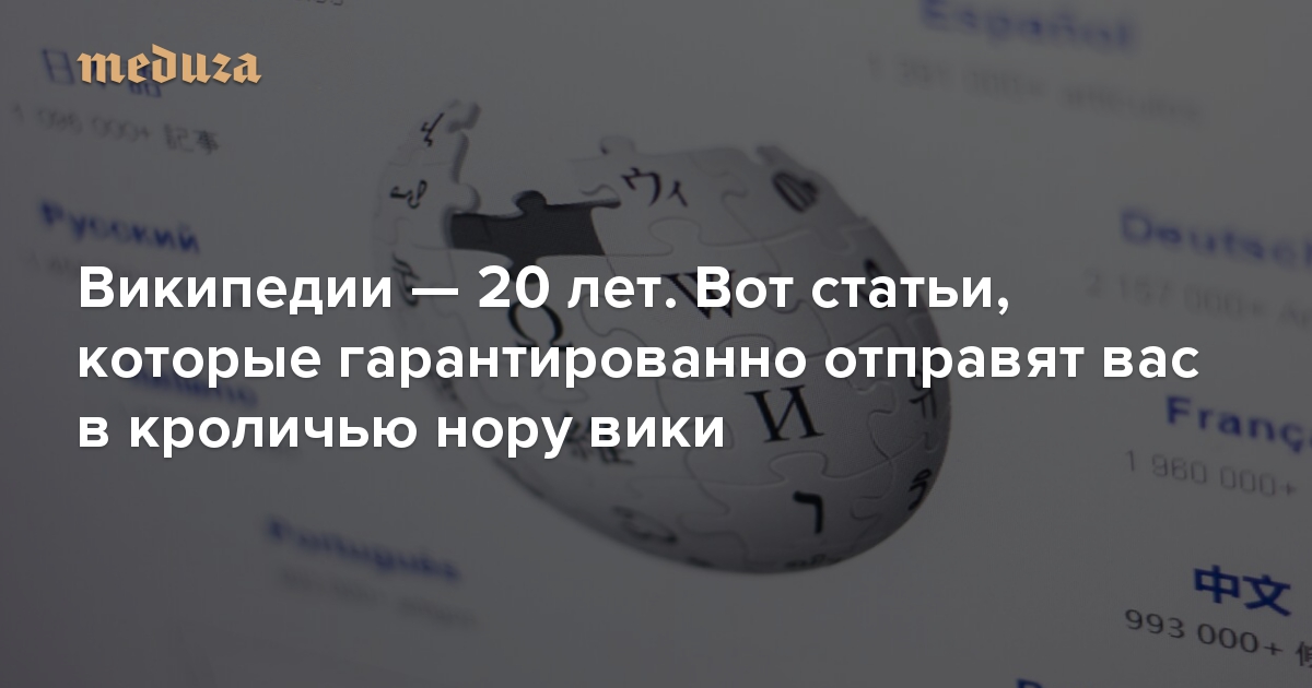 Википедии — 20 лет. Вот статьи, которые гарантированно отправят вас в кроличью нору вики Спасибо читателям «Медузы»