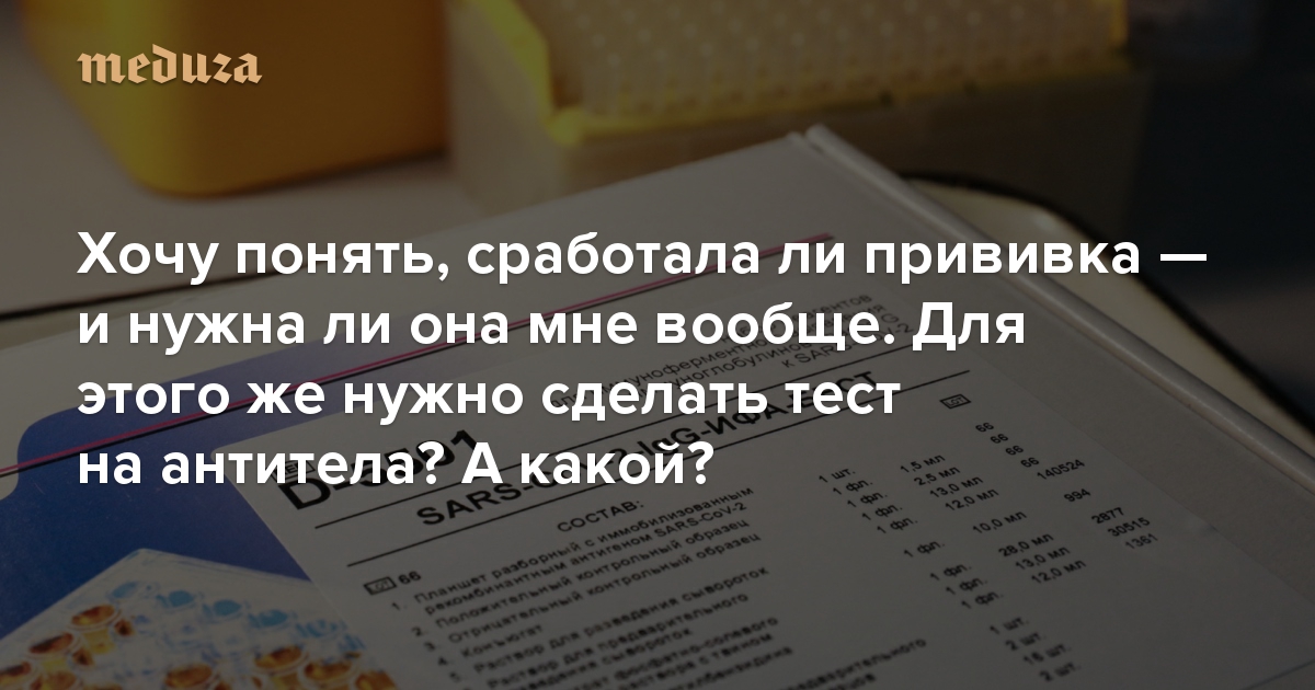 Хочу понять, сработала ли прививка — и нужна ли она мне вообще. Для этого же нужно сделать тест на антитела? А какой? Спойлер: простите, но никакой