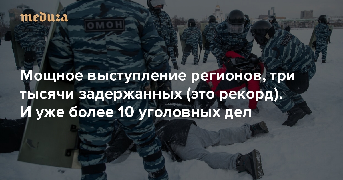 Акции 23 января. Главное Мощное выступление регионов, три тысячи задержанных (это рекорд). И уже более 10 уголовных дел