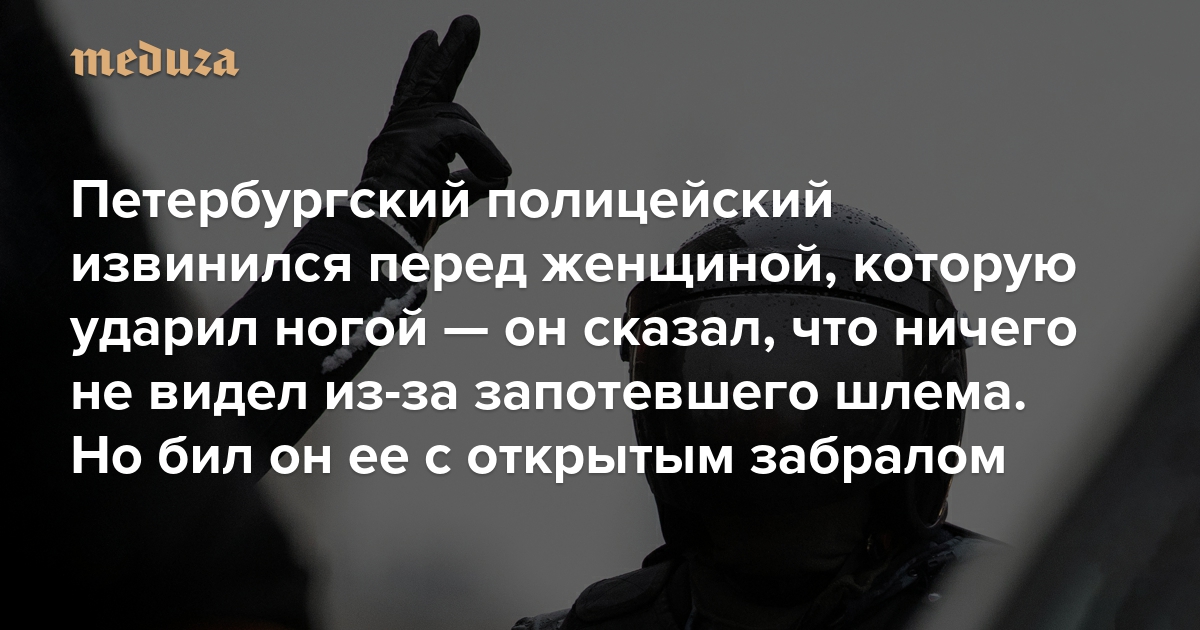 «Извините, меня за пять минут до этого залили газом, у меня запотело забрало» Петербургский полицейский извинился перед женщиной, которую ударил ногой в живот. Но бил он ее с открытым забралом