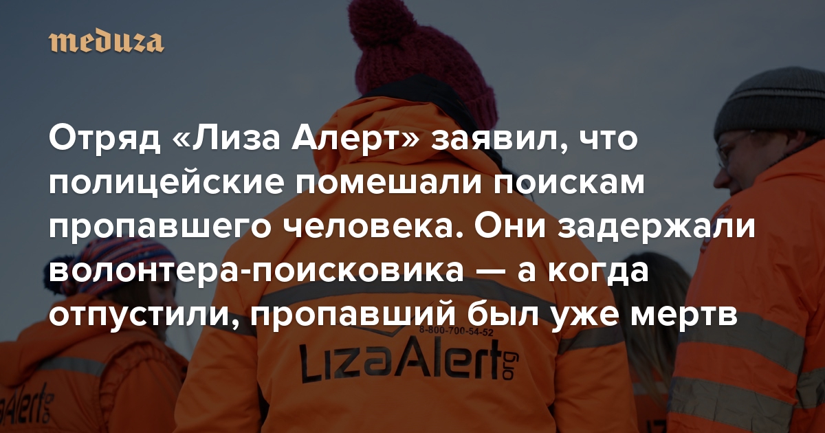 Отряд «Лиза Алерт» заявил, что полицейские помешали поискам пропавшего человека. Они задержали волонтера-поисковика — а когда отпустили, пропавший был уже мертв